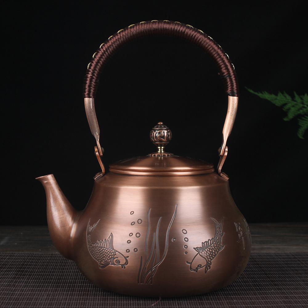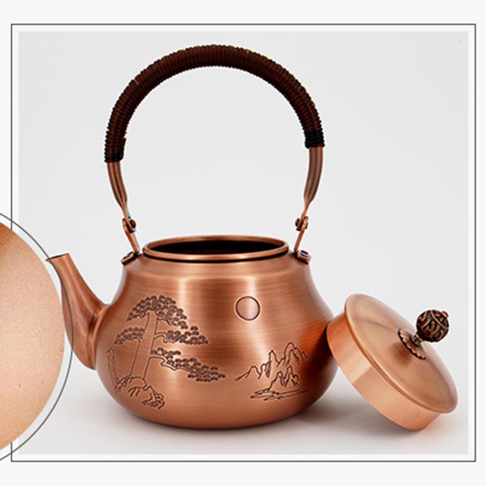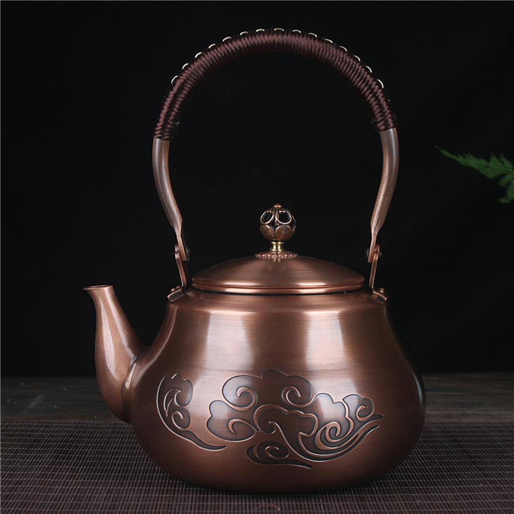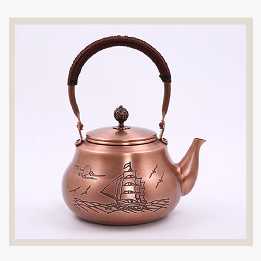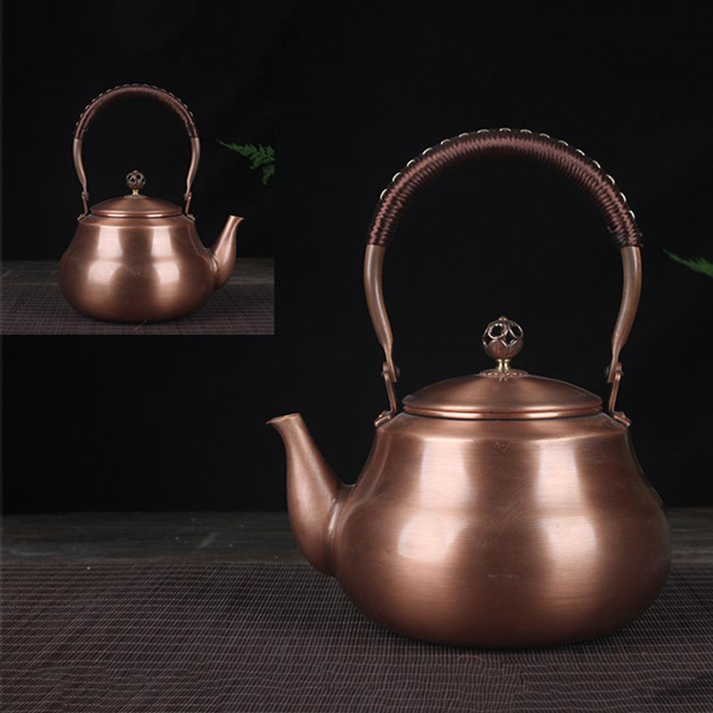 Китайский медный чайник ручной работы, Бытовой утолщенный чайник из красной меди, Чайник для кипячения воды большой емкости, Чайник для здоровья, 1,6 л