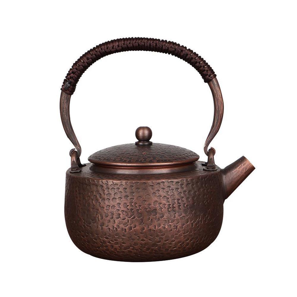 Традиционный медный чайник ручной работы, Чайник для заваривания чая большой вместимости, Чайник из красной меди, Здоровый чайник для кипячения воды для кухни, 1 л