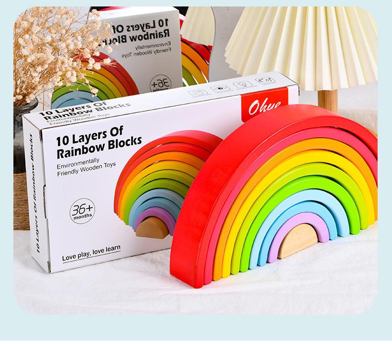 Деревянный набор радужных арок из десяти слоев для детей, развивающие игрушки для игры, подарок