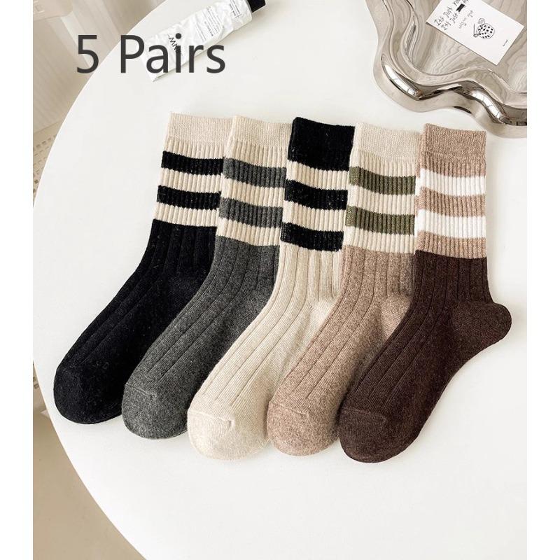 5 пар женских осенне-зимних новых теплых модных ретро полосатых гольфов — купить товар онлайн с бесплатной доставкой по всему миру!