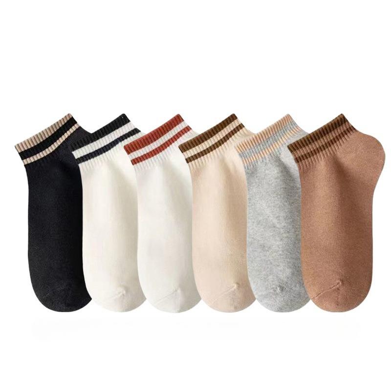 Женские летние тонкие спортивные студенческие носки однотонные с двойной полоской