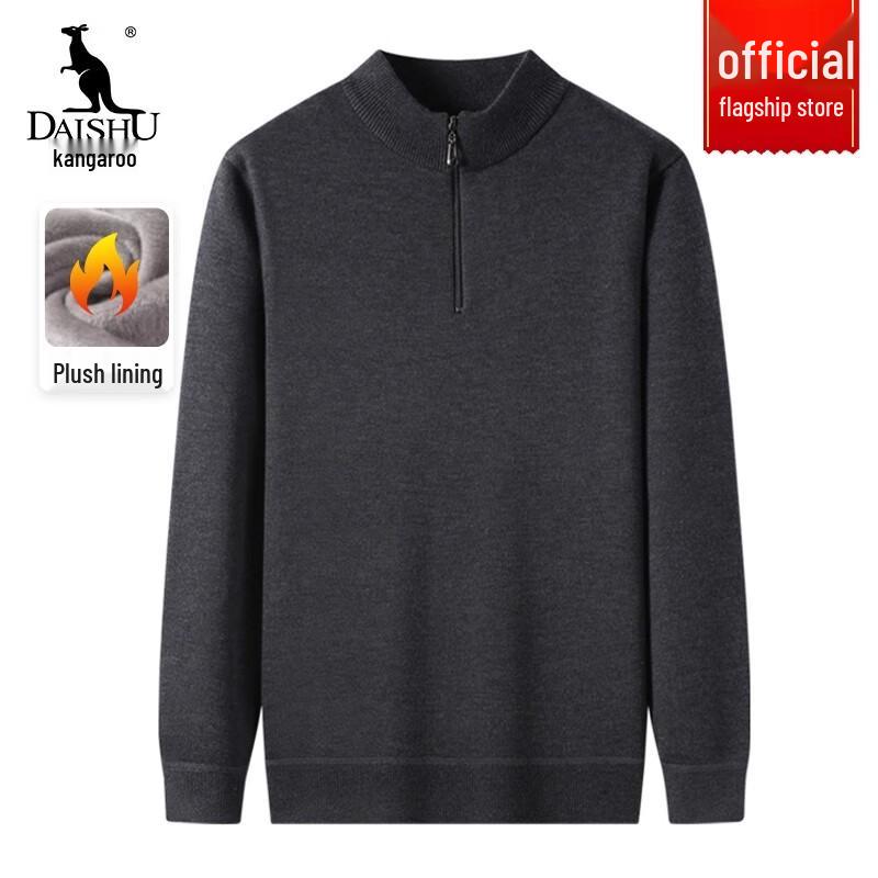 Мужской вязаный свитер DAISHU на флисовой подкладке с полузастежкой-молнией