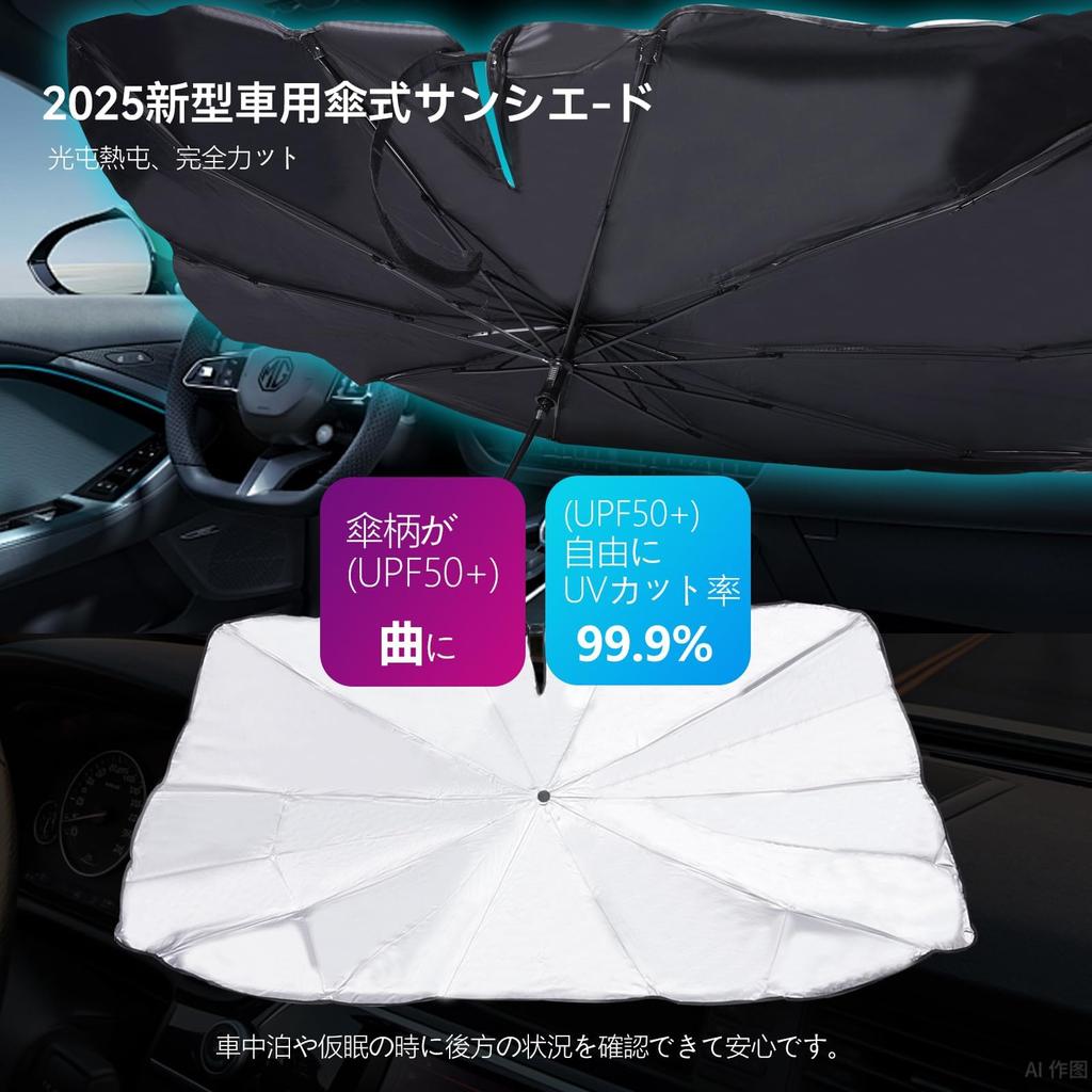 Автомобильный передний солнцезащитный козырек [Улучшенная гибкая центральная стойка 2025 года и десять усиленных ребер] [Стекловолоконные наконечники спиц] Автомобильный солнцезащитный козырек зонтичного типа с отверстием для зеркала заднего вида, Блокировка света, Блокировка тепла, Защита от УФ-излучения, Гибкие наконечники спиц, Защита от тепла, Защита от УФ-излучения, Предотвращает порчу салона, Легкая установка, Автомобильный зонт, Идеально подходит для автокемпинга, парковки на открытом воздухе и многого другого. В комплект входит чехол для хранения (140 x 80см)