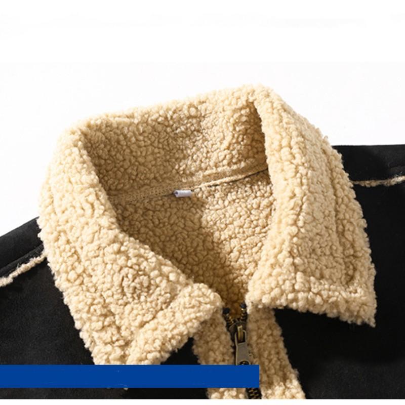 Мужское стеганое пальто из оленьей кожи с флисовой подкладкой, осеннее и зимнее меховое пальто из овечьего флиса