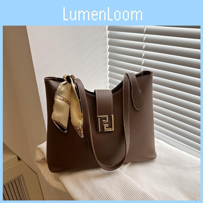 Простая плечевая сумка большой вместимости однотонного дизайна с декоративным шарфом