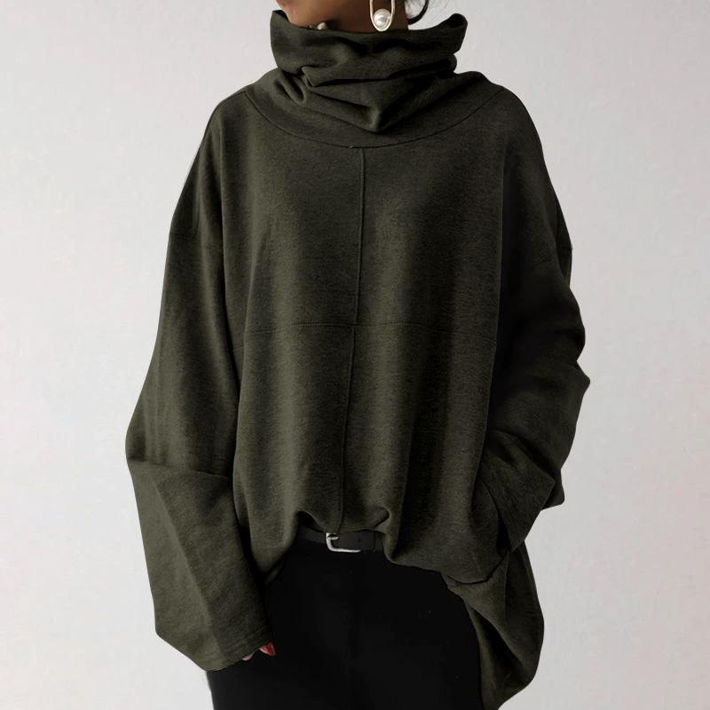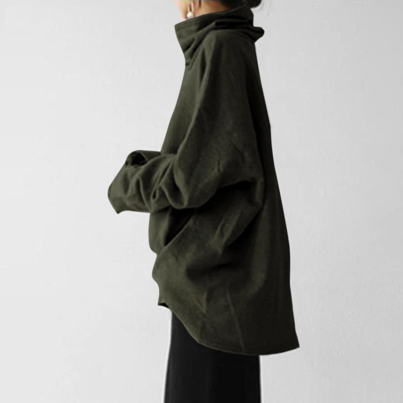 Женский свободный повседневный пуловер с длинными рукавами и высоким воротником, однотонная куртка с карманами, худи на осень и зиму