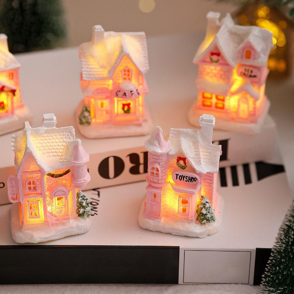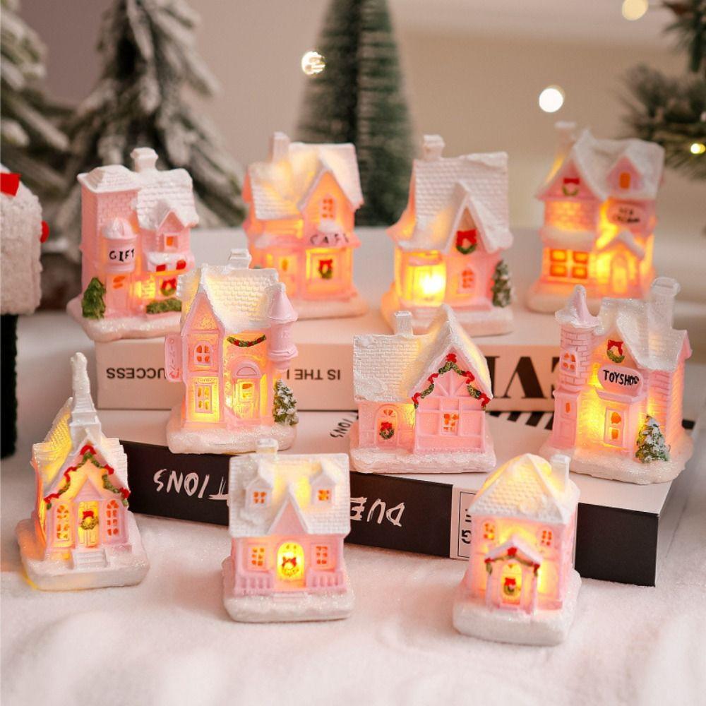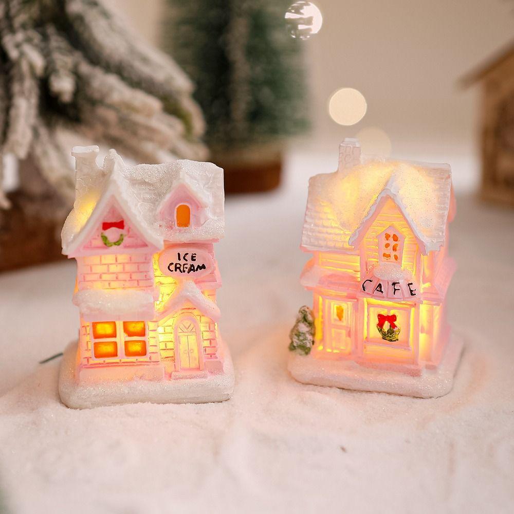 Resin LED Light Snow House Cute Christmas House Ornament Party Favors