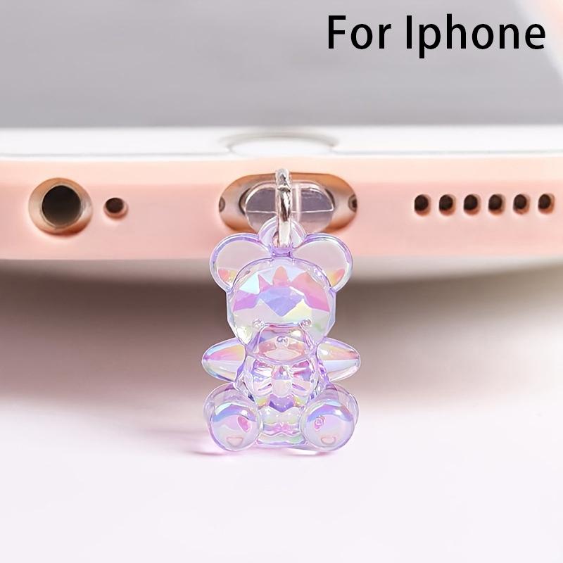 Заглушка для телефона от пыли, Очаровательная кавайная акриловая заглушка для гнезда медведя, пылезащитная заглушка, заглушка для порта зарядки телефона
