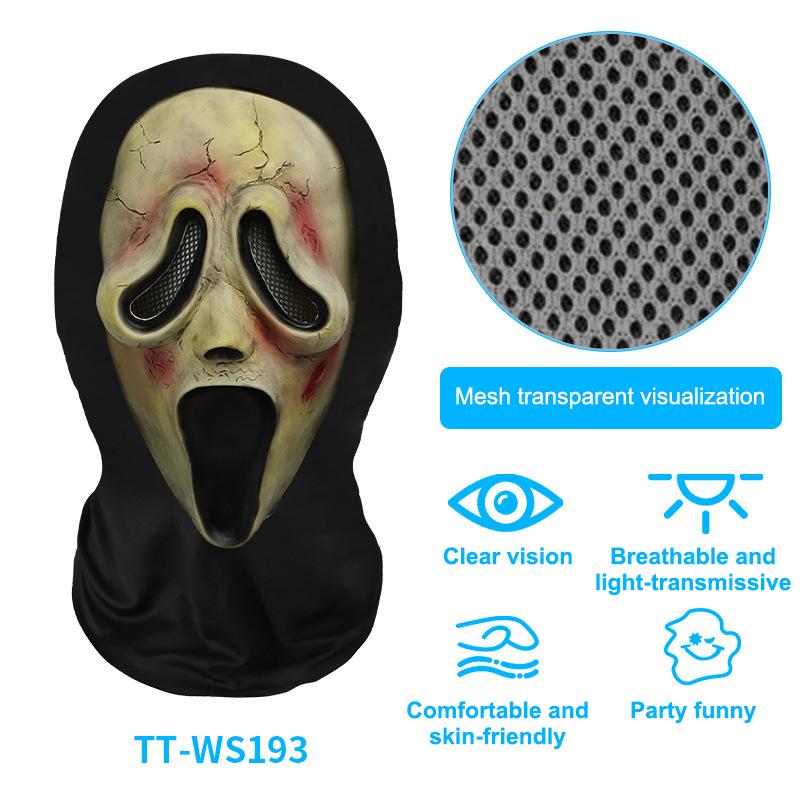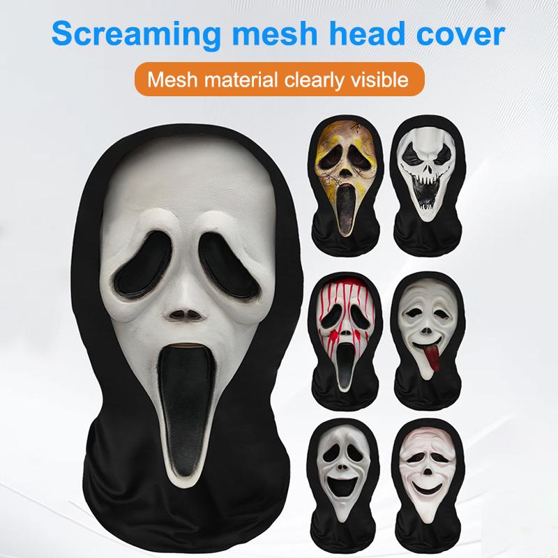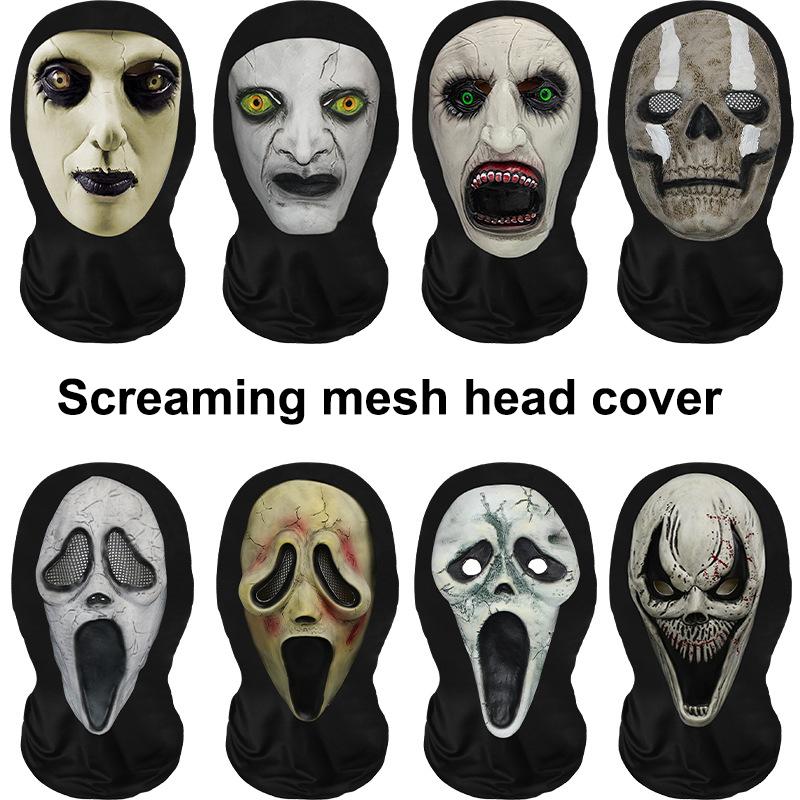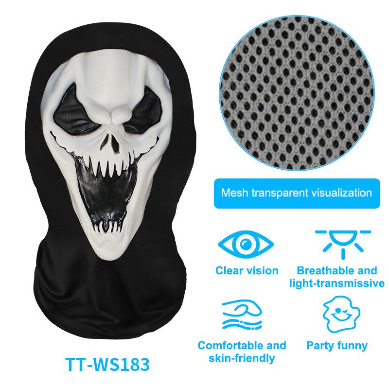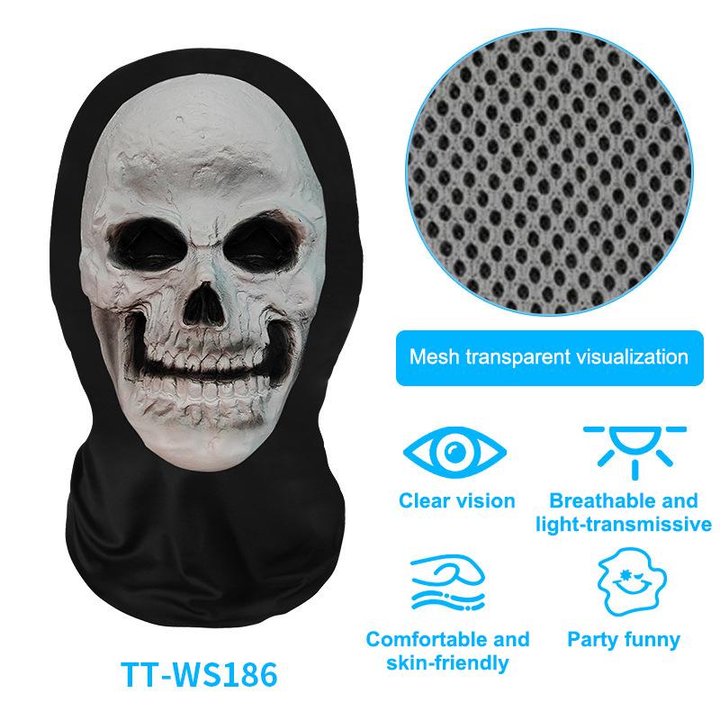 Жуткая маска призрачно-белого цвета, аксессуары для костюма лица черепа на Хэллоуин, реквизит для вечеринки для хоррор-косплея, маскарада для взрослых