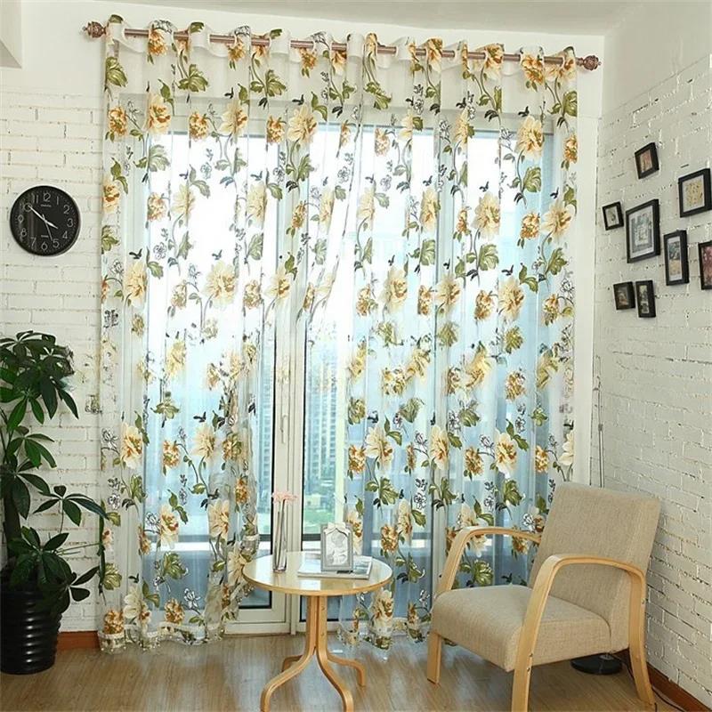 Тюлевые шторы с жаккардовым рисунком «Пионы» - Элегантные оконные украшения из вуали для кухни, спальни и гостиной