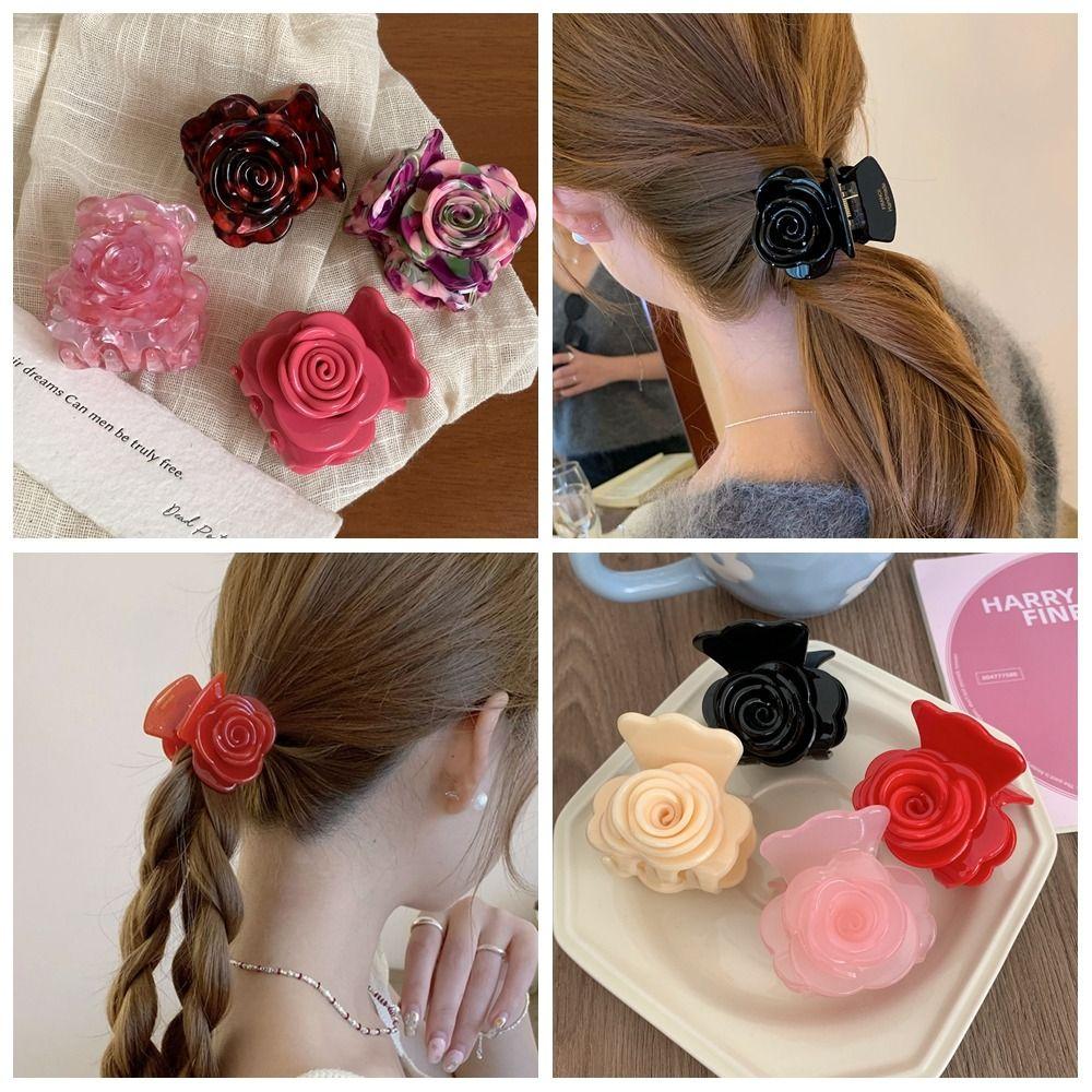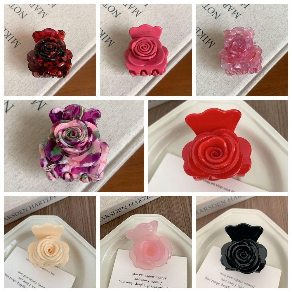 Конфетный цвет Цветок Заколка для волос Уксусная кислота Маленькая заколка-акула Персонализированная роза Заколка-краб для волос Девочка