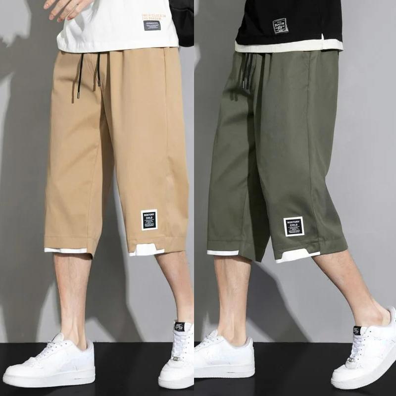 Летние мужские универсальные повседневные шорты Koreon, уличная одежда, модные мешковатые брюки с эластичной резинкой на талии цвета хаки, черные, зеленые, большие размеры, капри, 8XL