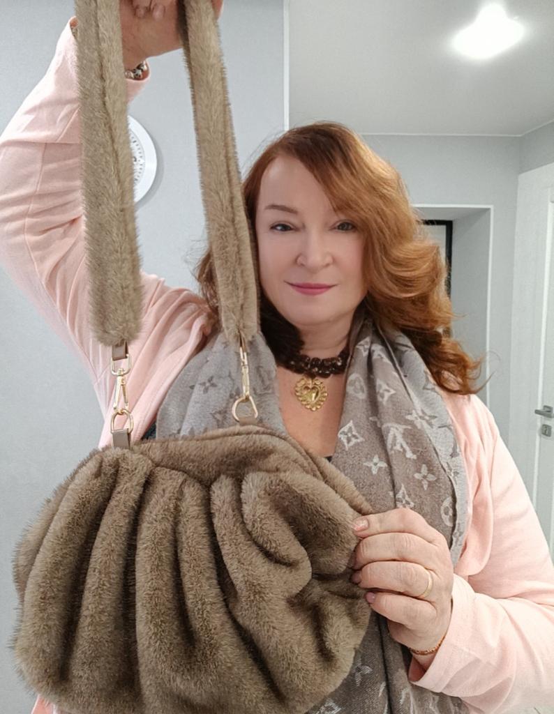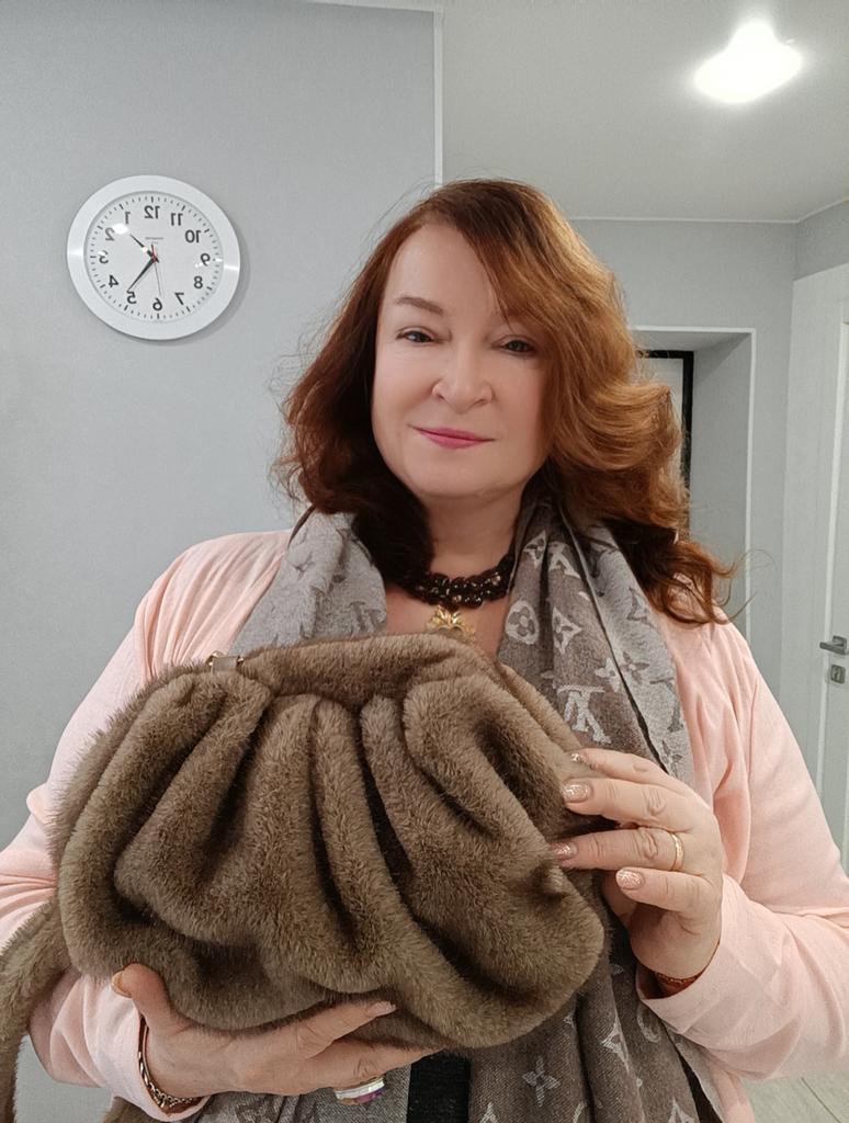 Чудесная меховая сумочка! Все, кто ее видит, восклицают одно и то же: ах, какая прелесть!.. Она мягкая, жутко приятная! Хочется гладить эту сумочку, как котенка. Выглядит дорого- богато, как норковая. Модная форма пельмень. Открывается-закрывается с небольшим усилием. Точнее, она не закрывается, а захлопывается. Если у вас есть сумка-пельмень, вы знаете, о чем я. Там подпружиненные металлические рамки. Внутри одно отделение, подкладка черная. Сумочка достаточно ёмкая, у вас все поместится, если, конечно, у вас нет привычки класть в сумку купленную буханку хлеба. Обратите внимание, эта сумка сейчас стоит 900 рублей, а я ее покупала за 1360 руб. Цена постоянно скачет, так что если она на момент покупки стоит дороже 900 руб, подождите, непременно подешевеет. Продавец так балуется(
