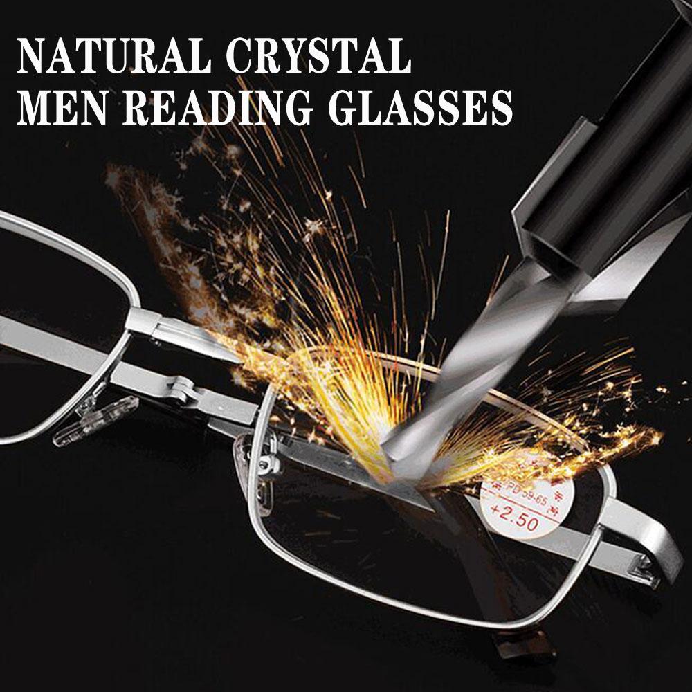 Квадратные очки для чтения с кристальными линзами против запотевания и царапин для мужчин, пресбиопические очки с металлическими оправами при дальнозоркости +3.5
