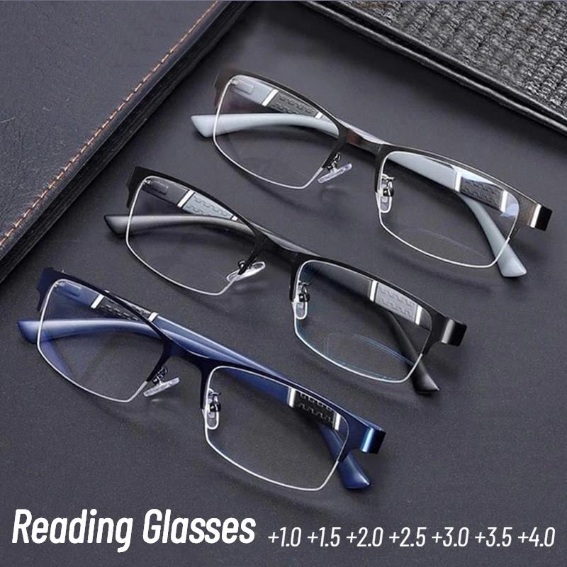 Металлические полуободковые очки для чтения Hd Очки для дальнозоркости Мужские деловые очки Диоптрии 0 +1.0 +1.5 +2.0 +2.5 +3.0 +3.5 +4.0
