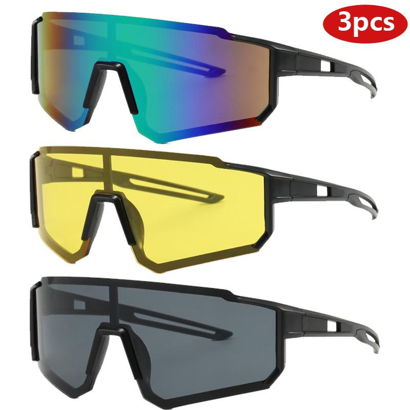 3Pcs Women Large Frame Sunglasses New Fashion Rectangle Design Goggles Simple Style Unisex Integrated Outdoor Sport Sun Glasses