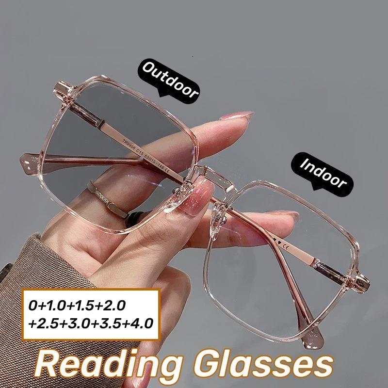 Модные фотохромные очки для чтения женские большие квадратные очки для пресбиопии на открытом воздухе меняющие цвет солнцезащитные очки от 0 до +4,0