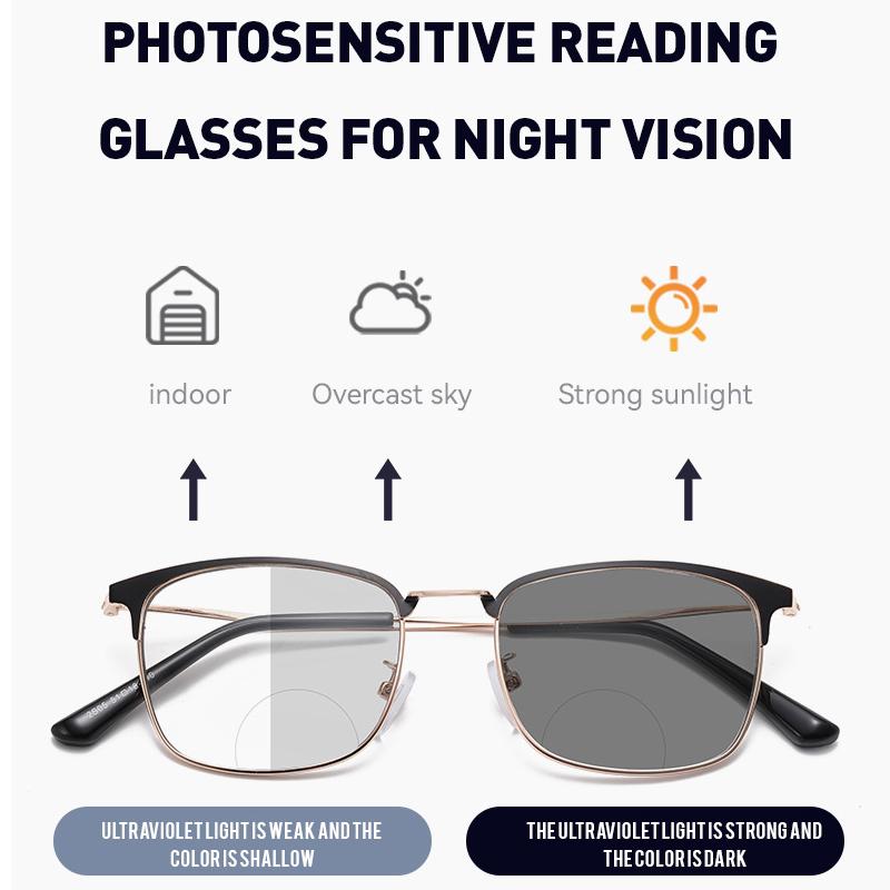 Маленькие квадратные фотохромные очки для пресбиопии для мужчин, ультралегкие металлические очки для чтения с изменением цвета, очки против синего света