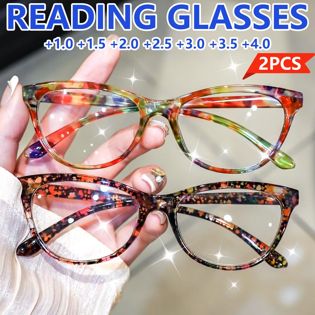 2 шт. Стильные женские очки для чтения «Кошачий глаз», Классический дизайн с принтом, Защита от синего света, Удобные очки для чтения книг