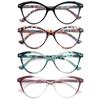 Набор из 4 очков для чтения для мужчин и женщин, круглые/квадратные/кошачий глаз, пружинные петли, ультралегкие очки для чтения, пресбиопия с диоптриями