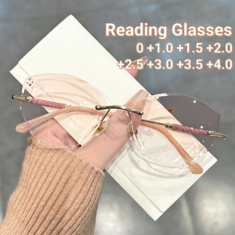 Очки для пресбиопии с розовым градиентом «Кошачий глаз» Безободковые очки для чтения с бриллиантами Блестящие очки для чтения со стразами для женщин