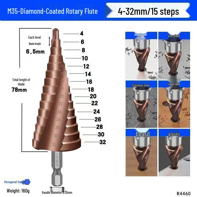 Сверло-пагода из кобальтовой нержавеющей стали: Многофункциональное ступенчатое сверло для металла, дерева и пластика