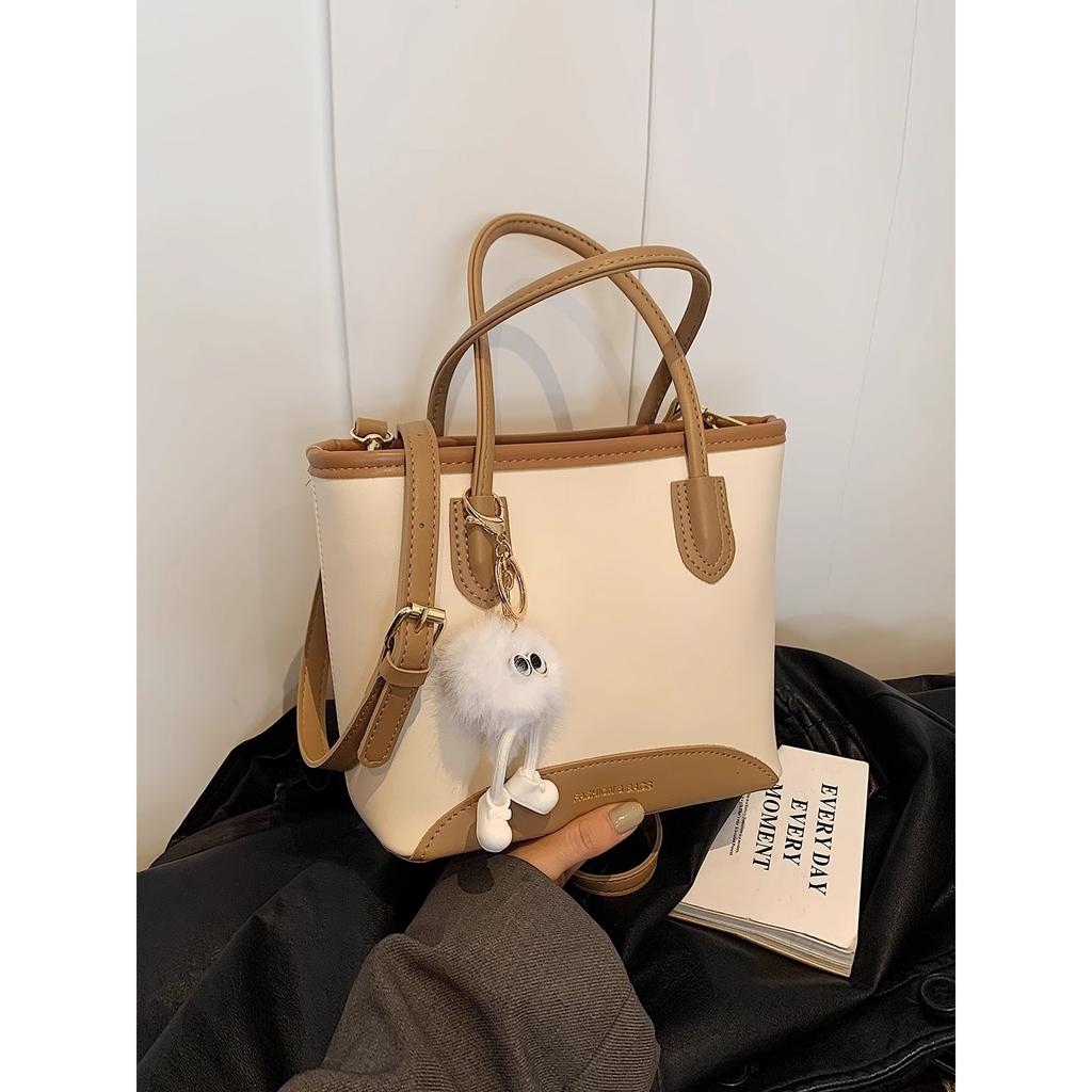 High-end contrasting color small bag women 2025 new popular foreign versatile messenger bag fashion handbag bucket bag