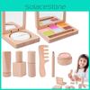 This wooden pretend play set features realistic bakery and beverage tools designed for children role-playing activities. Made of durable, safe wood, it measures approximately 32*26*8cm in height. The set promotes hand-eye coordination, sensory development, and imaginative play. Ideal for indoor kitchen or cafe scenarios, it encourages social interaction and creativity. Easy to clean with a damp cloth, fostering safe and engaging pretend baking and tea-making experiences for kids.