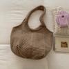 Korean lazy style large capacity retro solid color knitted tote bag niche fashion resort style woven armpit bag for women