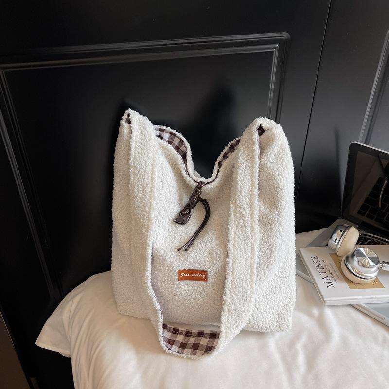Плюшевая сумка из овчины женская 2025 осень и зима новая модная повседневная сумка-мессенджер для работы большая вместительность сумка-тоут