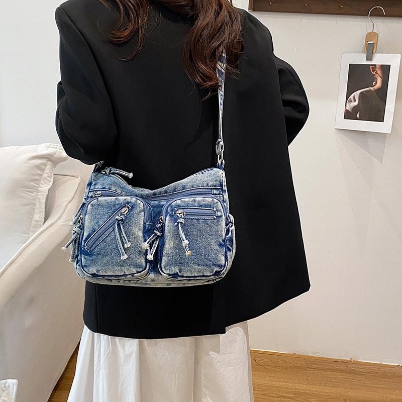 Bag women's fashion trend Japanese and Korean version women's bag small square bag 2025 new simple shoulder bag denim bag messenger bag