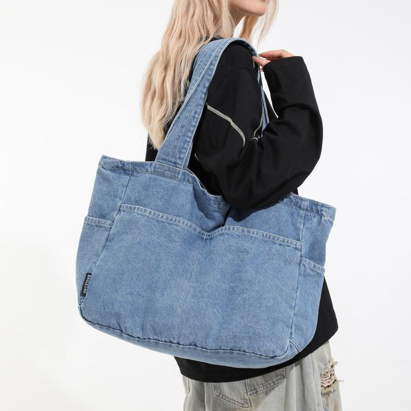 Джинсовая трендовая сумка через плечо 2025 Осень Новая мода Большая вместимость Сумка через плечо Студенческая 通勤 Дорожная сумка-тоут