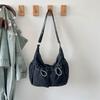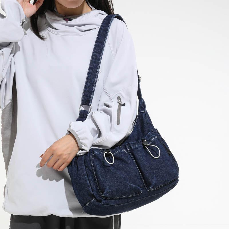 Осень 2025 новая джинсовая плиссированная сумка большой вместимости студенческая сумка-мессенджер для девочек текстурная нишевая сумка на плечо