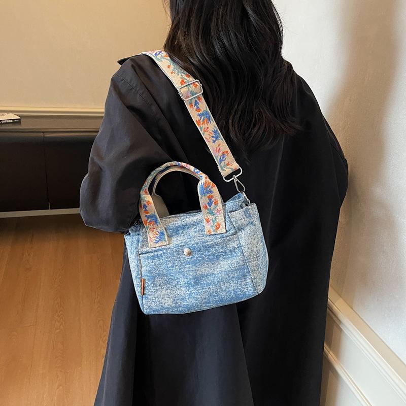 Fashionable sweet texture denim crossbody bag women's new ribbon trendy casual durable commuter shoulder bag