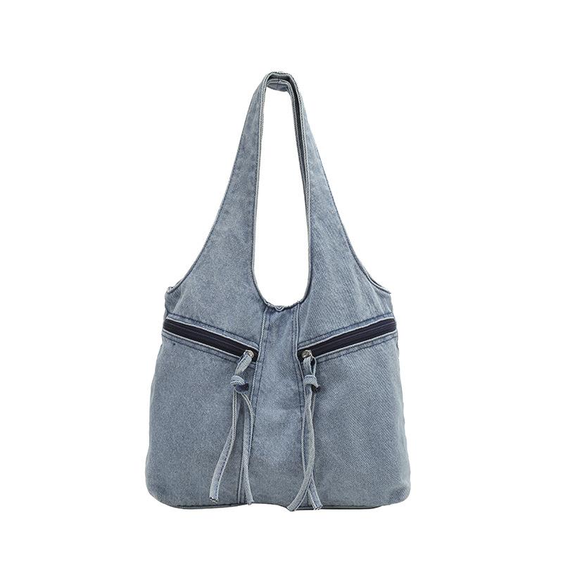 Повседневная джинсовая сумка большой вместимости женская 2025 осень новая легкая наплечная сумка сумка-тоут для поездок