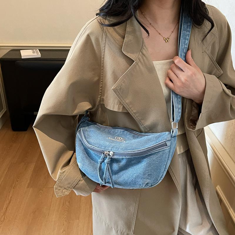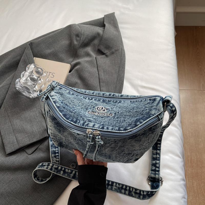 Джинсовая сумка-мессенджер женская большой вместимости литературная и художественная сумка на плечо 2025 осень новая модная персонализированная трендовая маленькая сумка