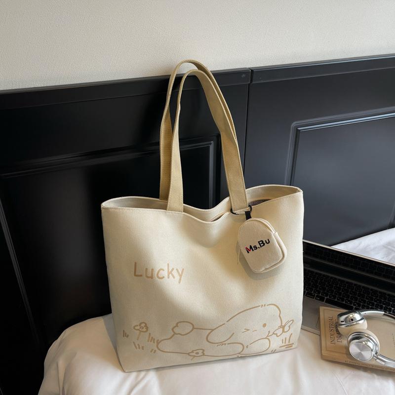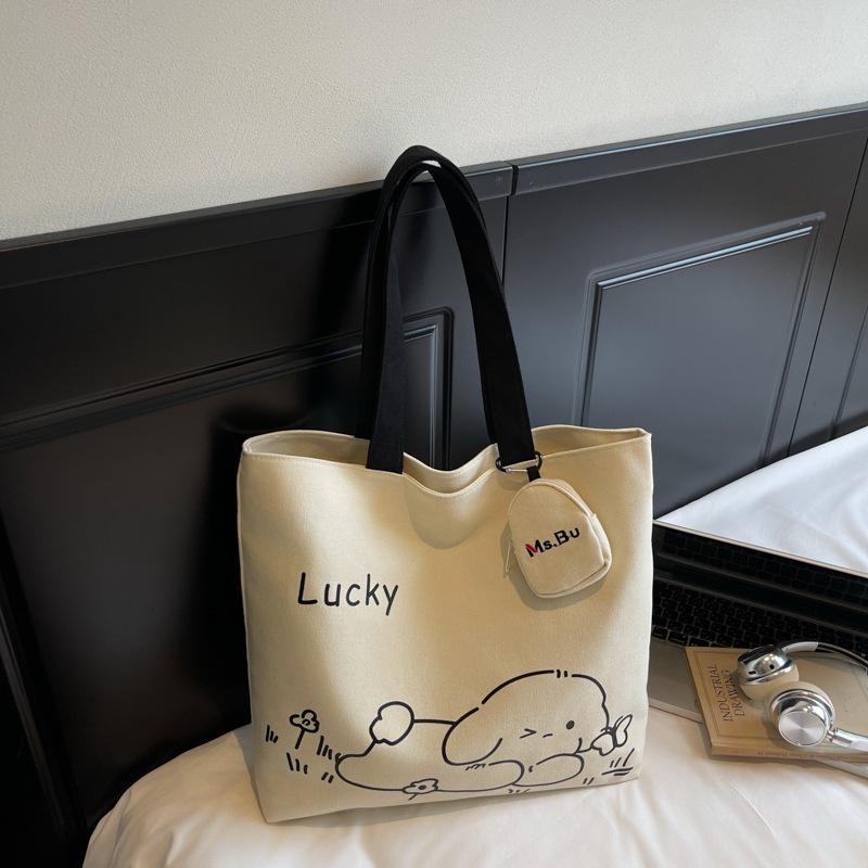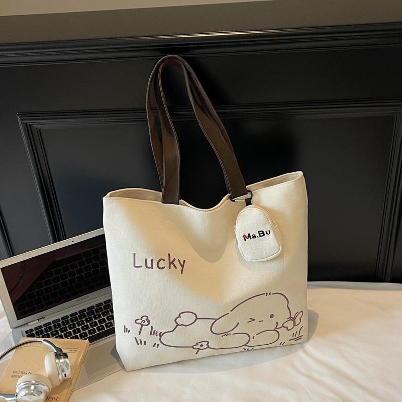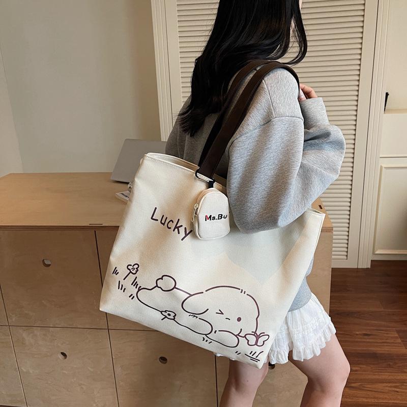 Вместительная японская мультяшная сумка через плечо для поездок на работу 2025 осень новая модная простая маленькая свежая холщовая сумка-тоут
