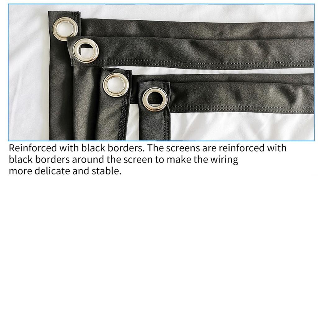 -Вам не нужно беспокоиться о морщинах или складках, вызванных складыванием экрана.. Просто повесьте его в помещении или на улице, пригласите свои семьи или друзей, разделяя свое радостное время друг с другом.проектор киноэкран ярче, чем большинство других проекционных экранов, гладкая поверхность улучшает результаты изображения. Мы надеемся, что наш высококонтрастный экран и анти-складочный материал сделают все проще. Если на нем есть пыль, очистите его мокрой тканью, рекомме