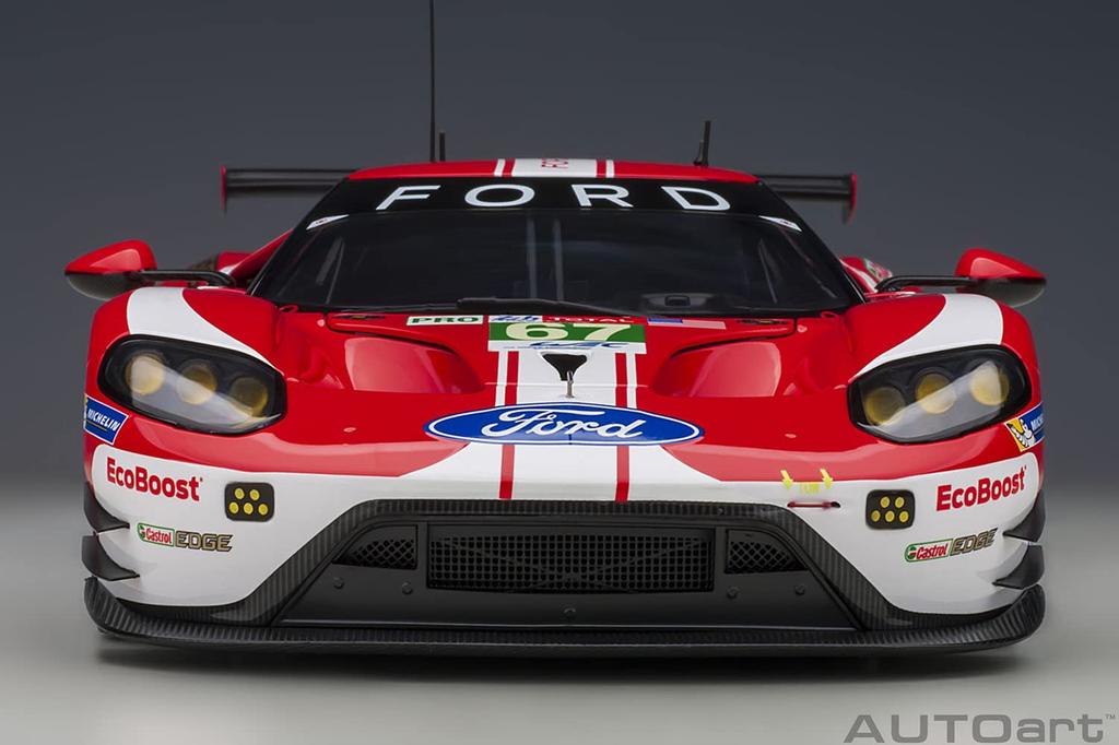 Car No. 67 is painted in the red and white of the Ford GT Mk.IV that won Le Mans in 1967.