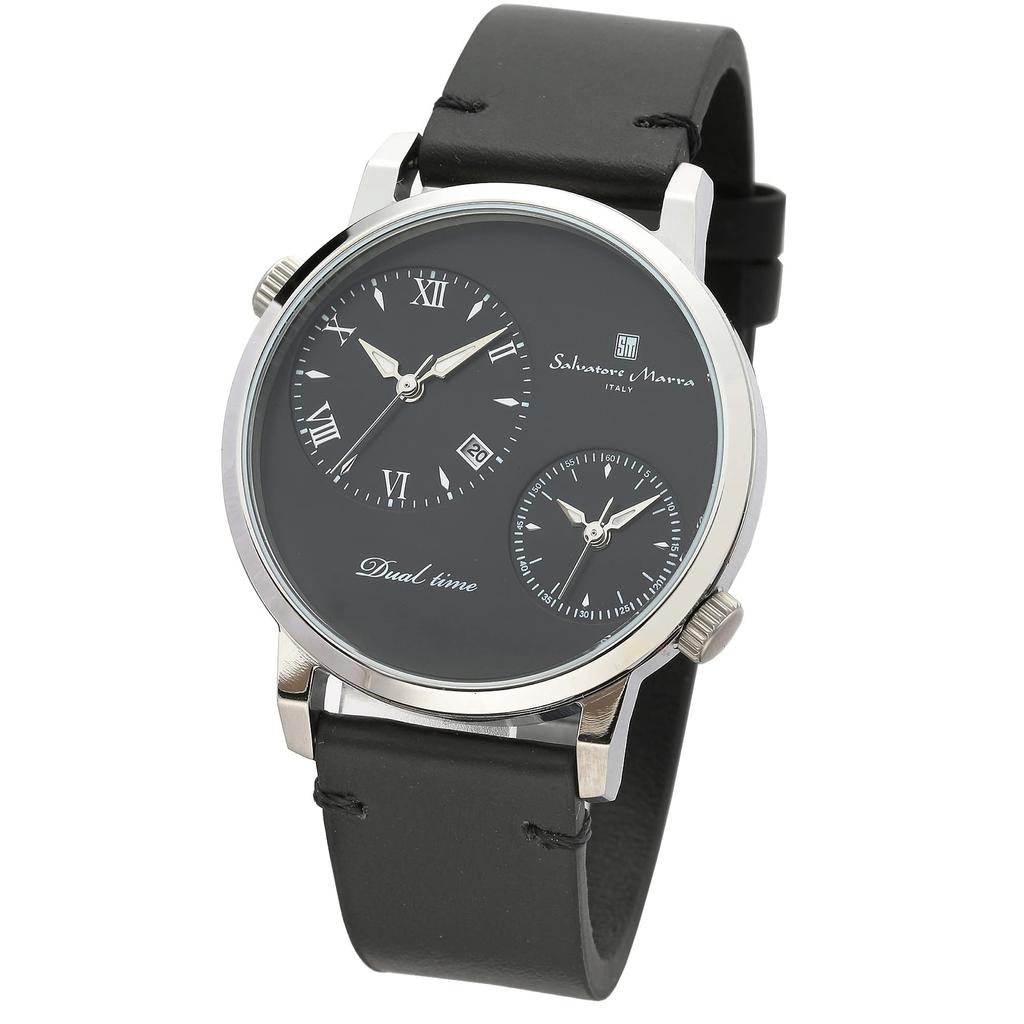 Salvatore Marra Men's and Women's Watch, Stainless Steel, Black and Silver, Analog Quartz Movement, Dual Time, Business, Casual, Leather Strap, SSBK — купить товар онлайн с бесплатной доставкой по всему миру!