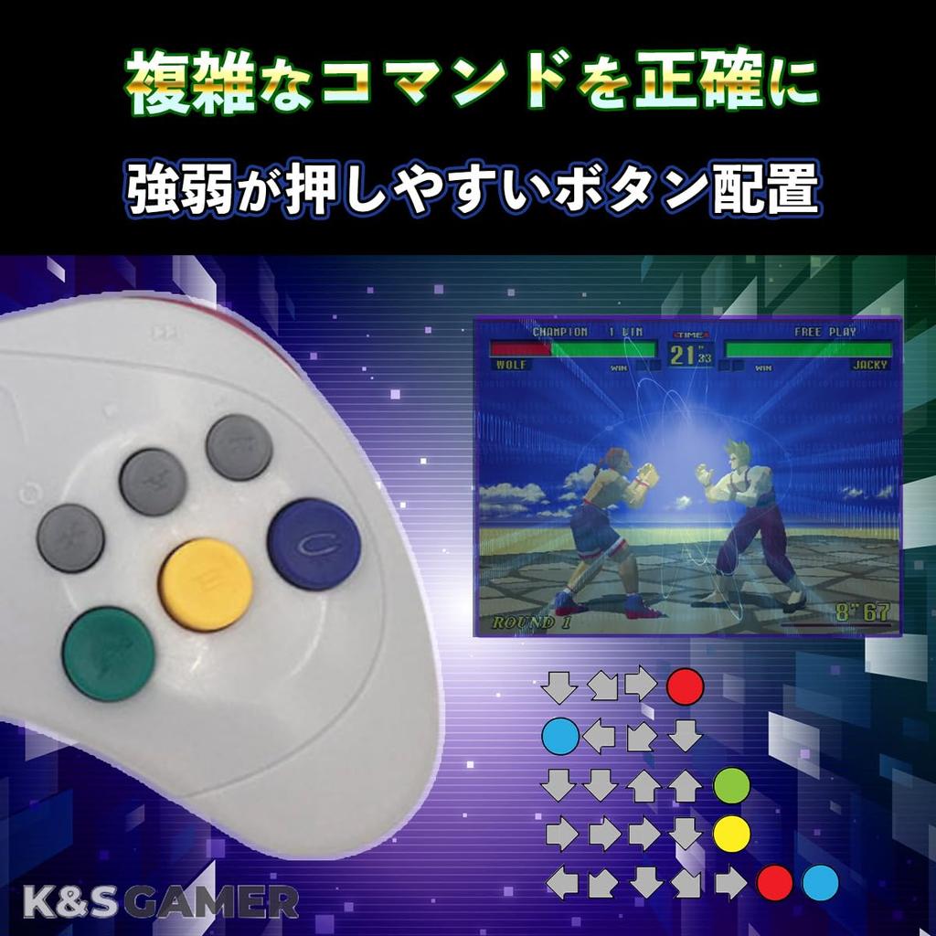 K&SGAMER Sega Saturn-Style Gamepad USB Controller, Steam PC Compatible (Black)