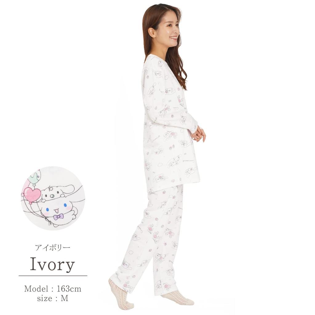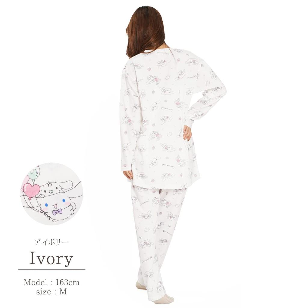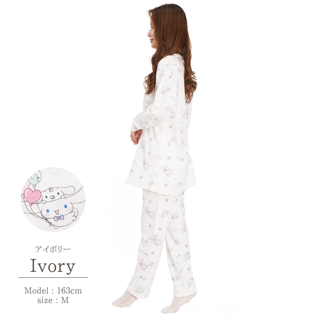 SAZAC SAN1568 Мини-флисовая пижама Cinnamoroll, женская, комплект с длинными рукавами и брюками, домашняя одежда, Sanrio Cinnamon & Milk (Слоновая кость/Размер L)