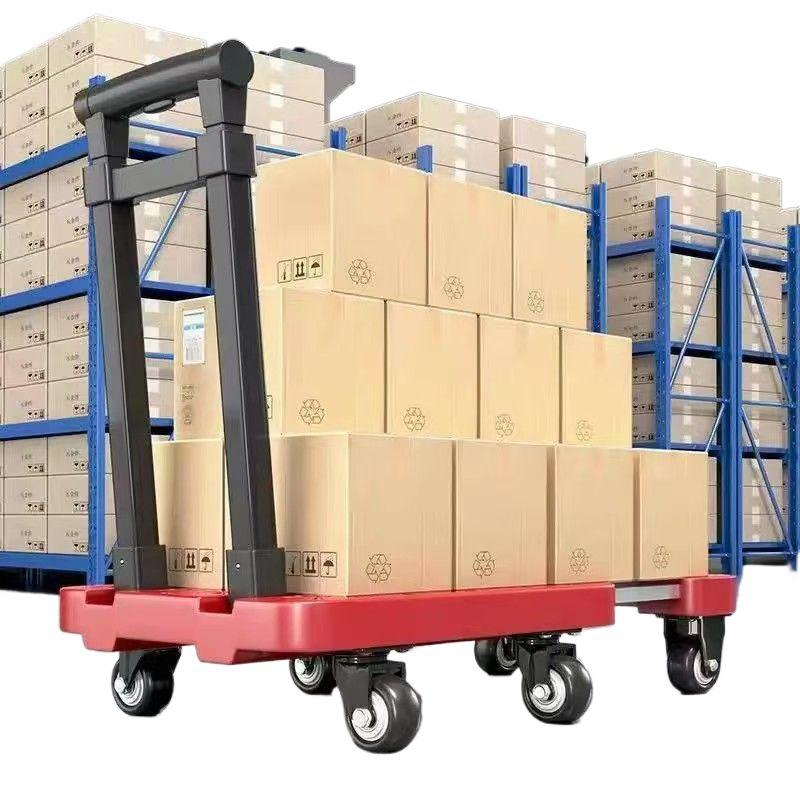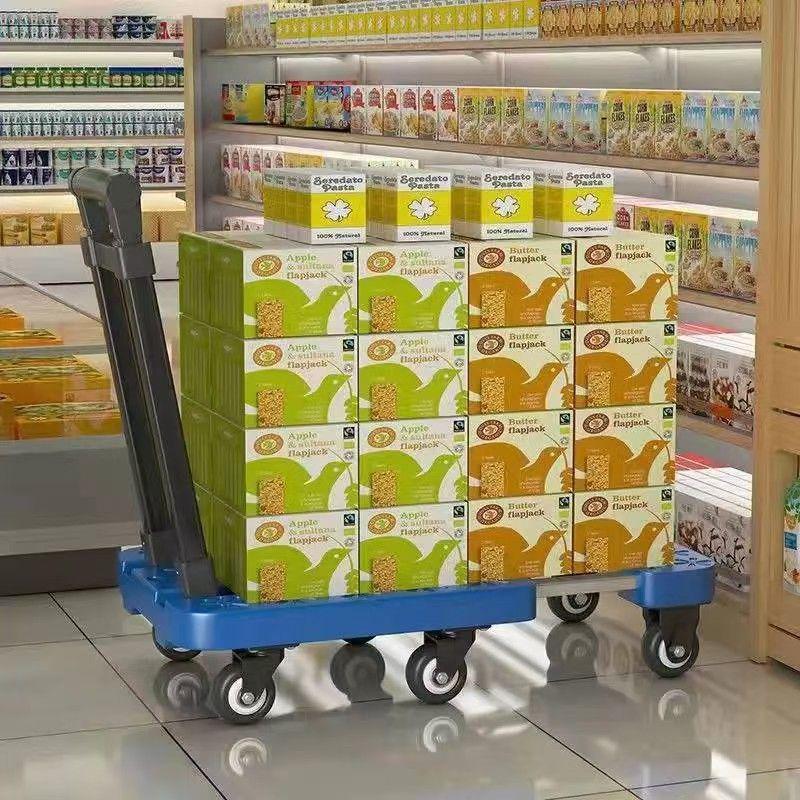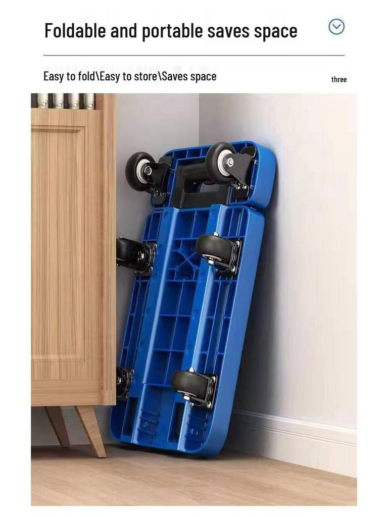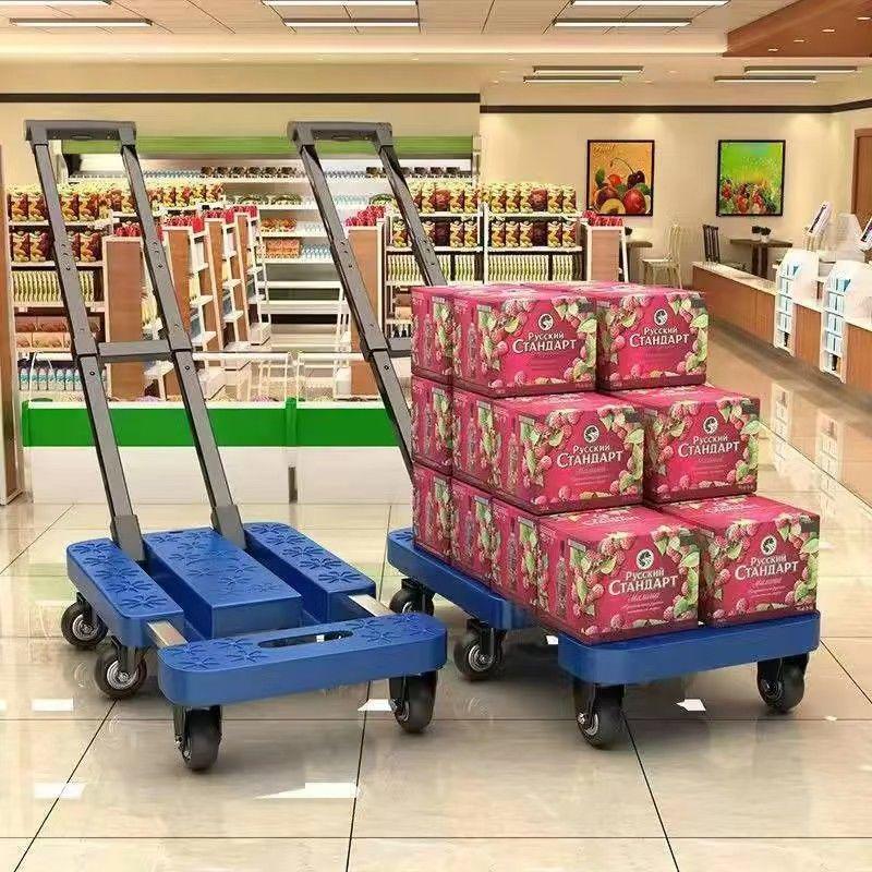 Компактная складная тележка: Легкая, выдвижная тележка для удобной транспортировки товаров.