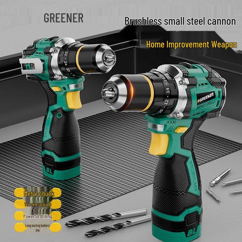 Compact Brushless Electric Hand Drill - Rechargeable Lithium, Multipurpose Impact Drill for Home and Wall Applications