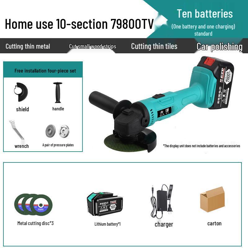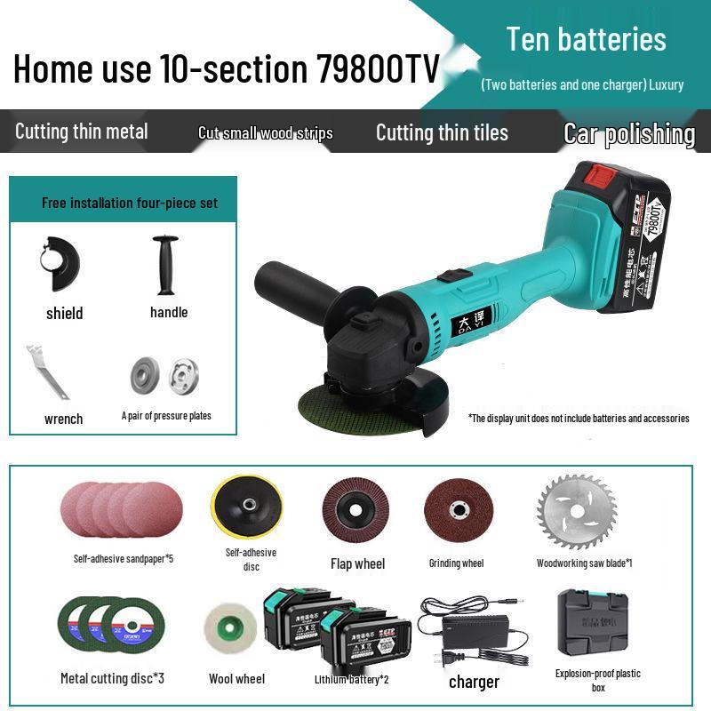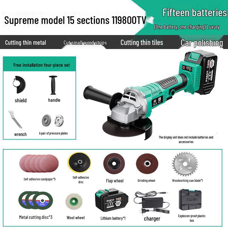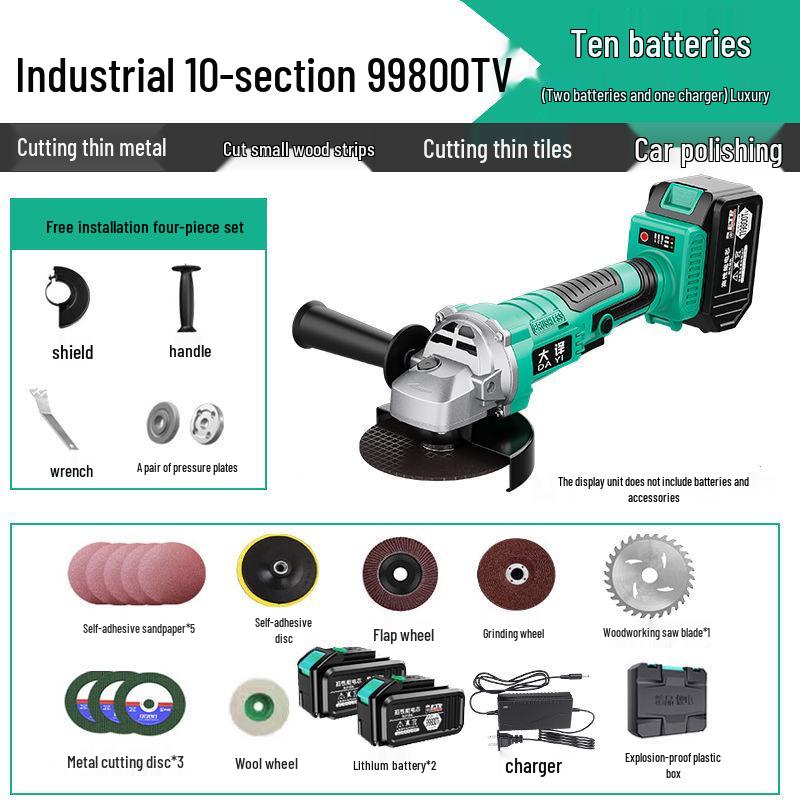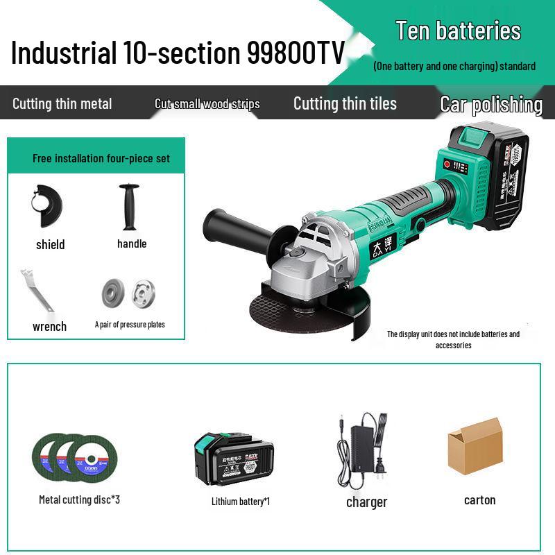 Бесщеточная угловая шлифмашина с литиевой батареей - Многофункциональная шлифмашина, полировальная машина и режущий инструмент со шлифовальным кругом.