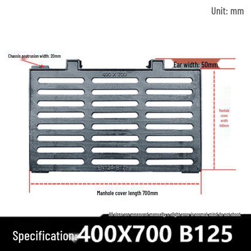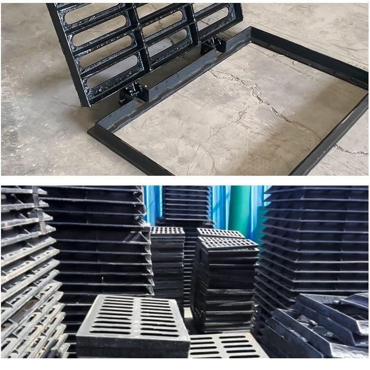 Сверхпрочный прямоугольный комплект крышки люка из ковкого чугуна для дождеприемных колодцев