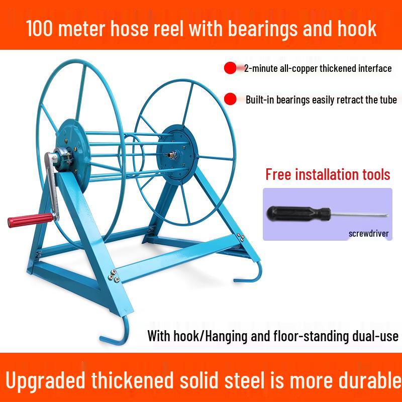 Hand-Crank Wall-Mounted Agricultural Hose Reel & High-Pressure Sprayer Pipe Coiler