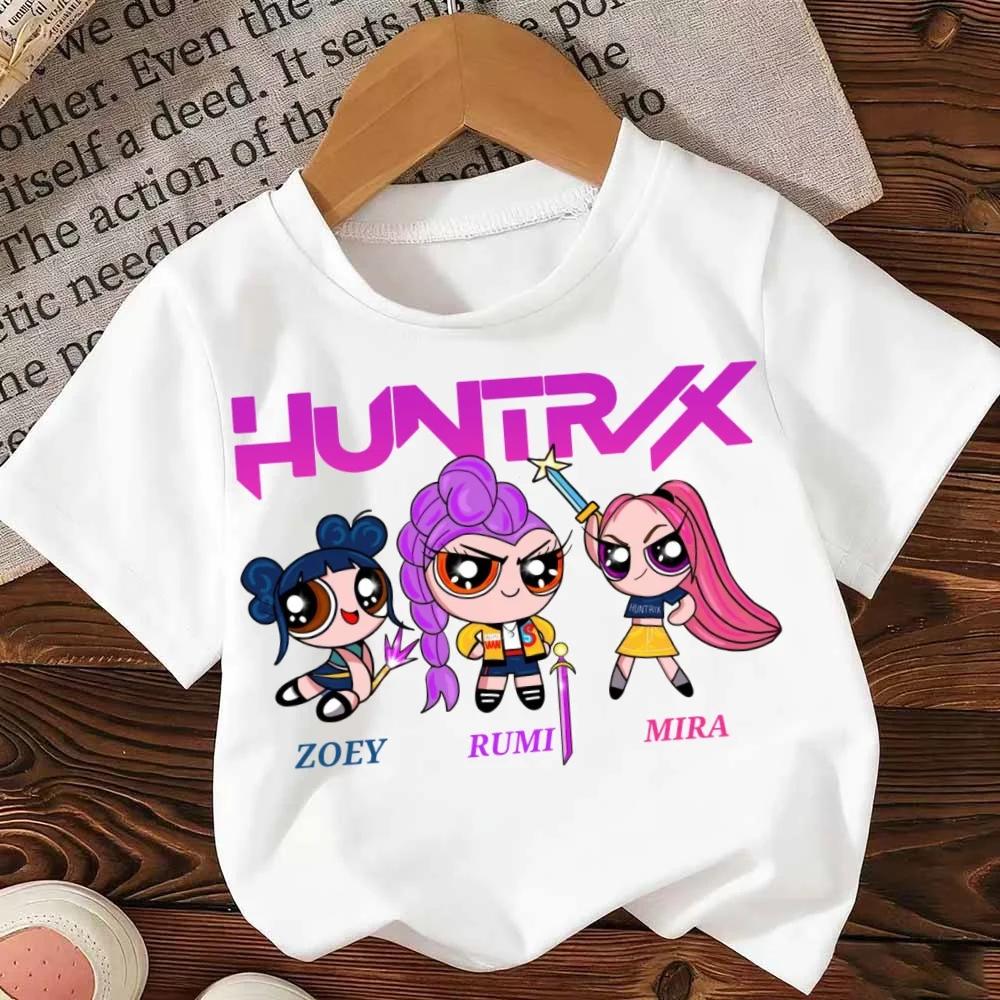 Футболка K-pop «Охотники на демонов» для девочек и мальчиков, фиолетовая футболка с коротким рукавом, аниме, детская одежда, Huntrix, Тигр, Харадзюку, топы, футболка, подарки