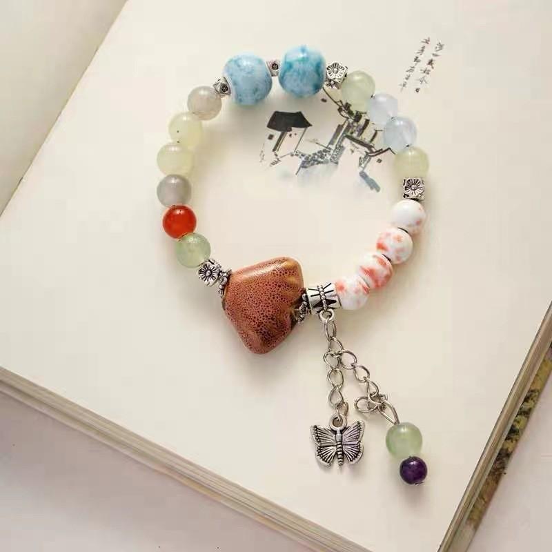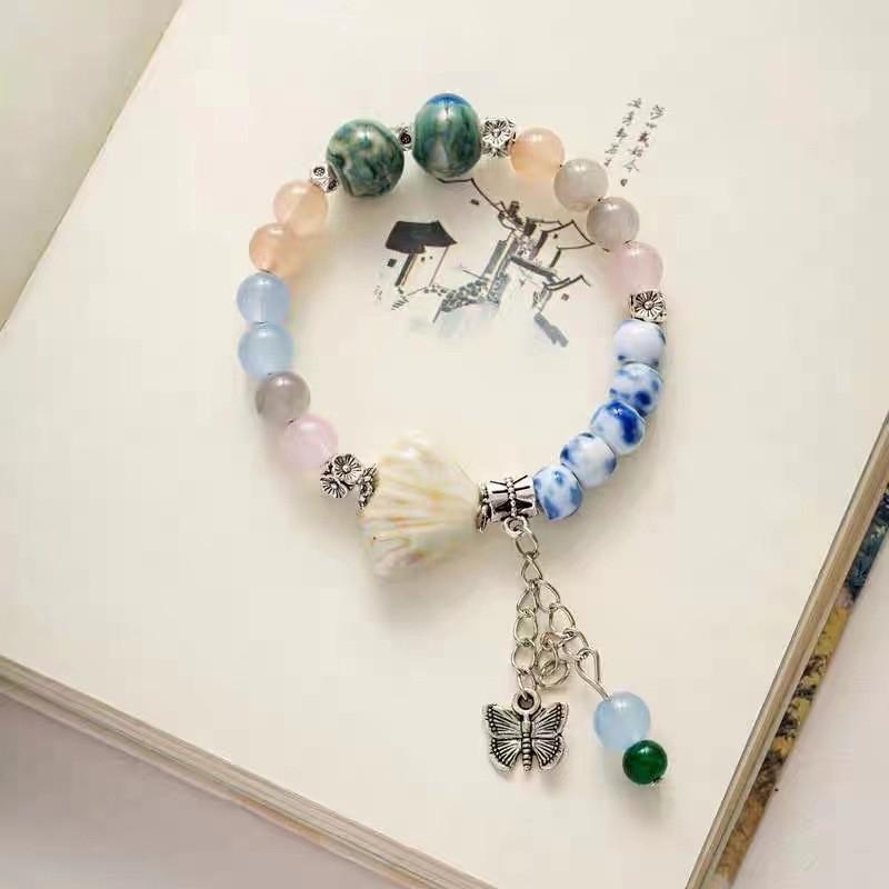 Новый изысканный китайский керамический браслет из ракушек и гребешков с подвеской-бабочкой, лето 2024