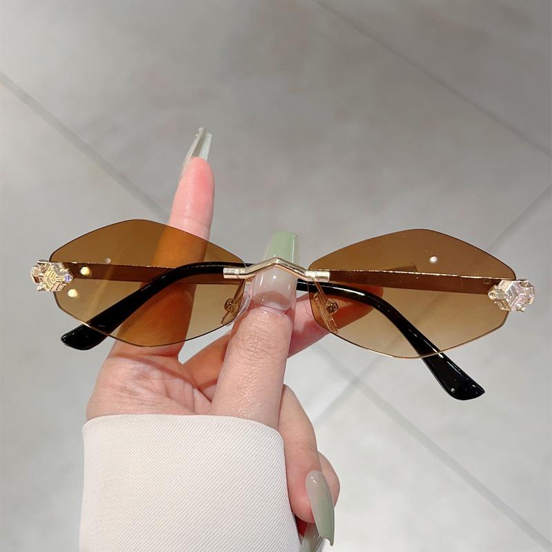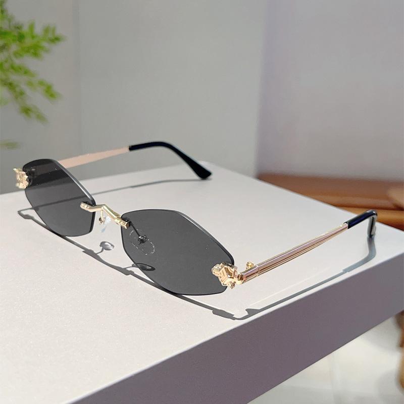 Винтажные безободковые ромбовидные солнцезащитные очки женские мужские дизайнерские популярные панк хип-хоп металлические с головой леопарда солнцезащитные очки UV400